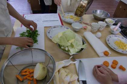 9日の午後,家庭科室で6年生が調理実習をしました。