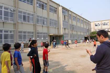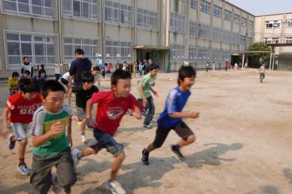 今朝はインターバル走。運動場の一番遠回り。速い子で1周約30秒。