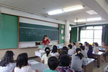 そんなノーベル物理学賞受賞の大先輩の写真が見つめる理科室に今日は5年生が全員集合しています。