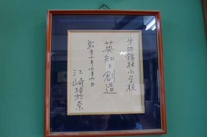 理科室には,江崎玲於奈博士からいただいた色紙も飾ってあります。