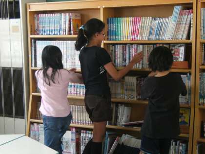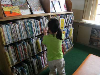 図書室掃除で,五年生ががんばってくれています。所々の本がさかさまになっていたり,五十音順にそろっていないところがあるので,掃除のときや,委員会のときに直しています。本を返す処理をしてもらってから,本を本棚に返す時に,元の場所に向きを確かめて返してくださいね。