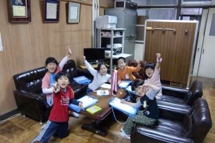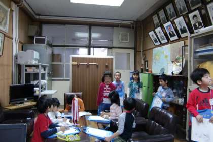 3時間目,学校探検中の1年生が何人か校長室に来ました。