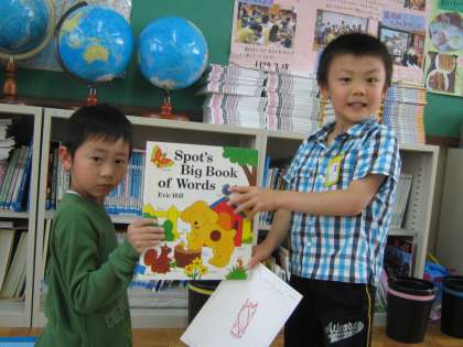1年生だけの学校探検です。国際ルームには,英語の本や地球儀がありました。用務室では用務員さんに,どんなお部屋か教えてもらいました。職員室の奥には,事務室があることを見つけました。