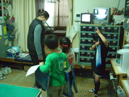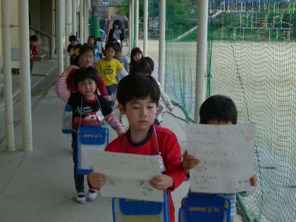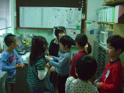 1週間以上前から「今日は,学校探検ですか?」「学校探検はいつですか?」の声。朝,「今日が学校探検です。」と話すと,「やったぁ!」と歓声があがりました。学校探検では,色々なところで色々な出あいがあり,新しい発見があったようです。