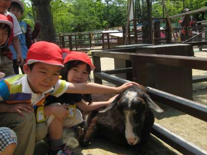 「おとぎの国」では,白ヤギさん,黒ヤギさんとふれあい体験ができました。
