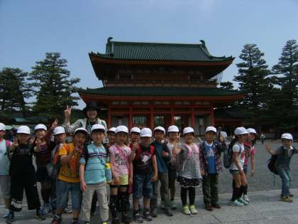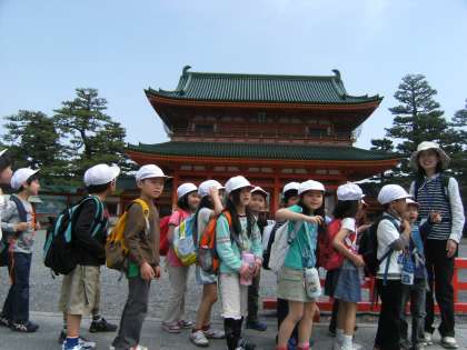 遠足で,平安神宮までやってきました。「知ってる」「七五三をここでやった」という声も上がりました。ここまでくると,動物園まではもう少しです。