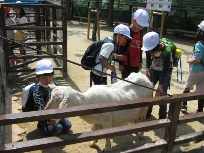 延期になっていた遠足ですが,今日はよいお天気になり,元気いっぱい出発できました。はじめに「おとぎの国」へ行き,動物たちと触れ合いました。みんな素敵な笑顔でした。