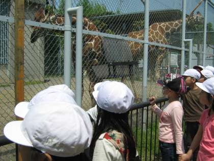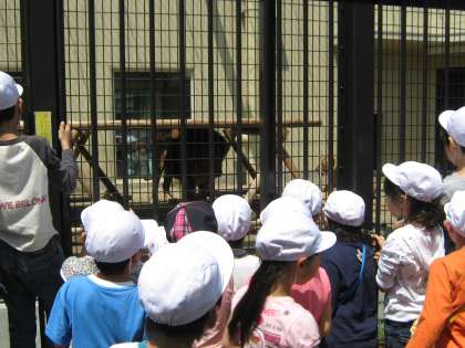 「おとぎの国」へいったあと,クラスごとに動物園をまわりました。新しくできた「もうじゅうワールド」では,ライオンが何度も大きな声で鳴き,みんなびっくり!