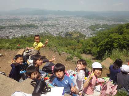 しかし,少しずつ「大の字」に近づくにつれ,子どもたちのテンションも再びあがりはじめ,大文字から見る京都の街並みに大興奮でした。