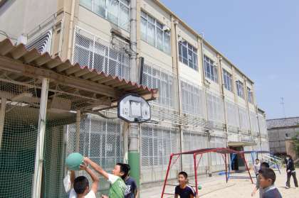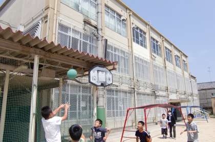 ついこの間まで竹馬に興じていた6年生の男子の一団が,今度はバスケットボールをしています。