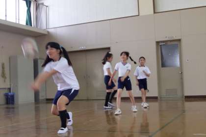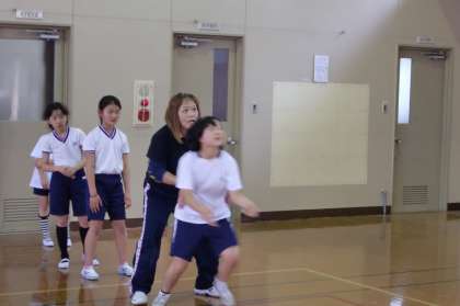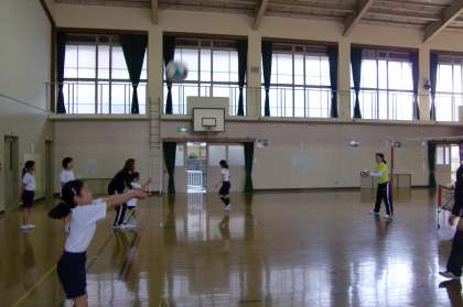 部員8名。みんな元気に声は出していますが,やっぱり,ちょっとさびしいですね。バレーボールやりたいという子がもう少し集まるともっともっと活気が出ていいんですが…。