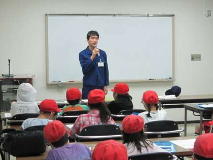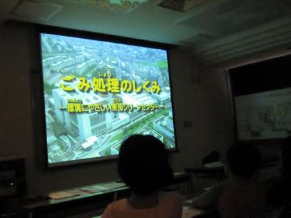 4年生の社会見学は、1年間に5回ぐらいあります。その第1回目!醍醐の方面にある東部クリーンセンターに行ってきました。はじめは、研修室のような部屋で係の方からクリーンセンターの役割やゴミ処理のしくみを簡単に教えていただきました。