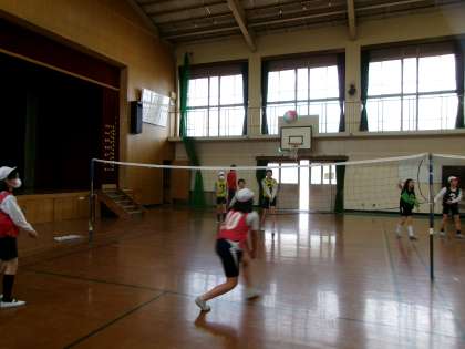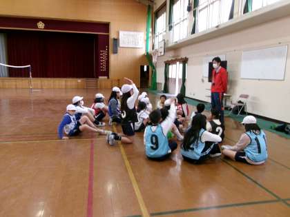 ソフトバレーボールの学習を行っています。ボールが落ちる場所を予想して動いたり、チームで励ましの声を掛け合ったりと相手のコートに返すために一生懸命に取り組む姿が見られました。また、ルールについて、誰もが楽しくソフトバレーボールを行うための工夫や疑問に思ったことについてみんなで話し合うことができました。