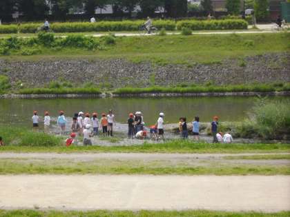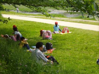 お弁当を食べ終わった子どもから,河原で遊んだり友だちとお話をしたり,思い思いの時間を楽しんでいました。