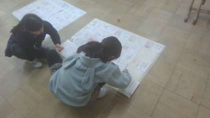 また、今までの学習で取り組んだ学習の成果物も発表できるようにしようと、模造紙に貼って準備をするなど、自分たちの手で作る発表会に向かって活動を進めています。
