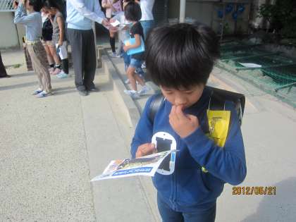 今日は,朝早くから起きて金環日食日食を見た児童がほとんどでした。木漏れ日で見た日食のきれいさにも驚きました。何だか興奮気味の児童が多かったようです。