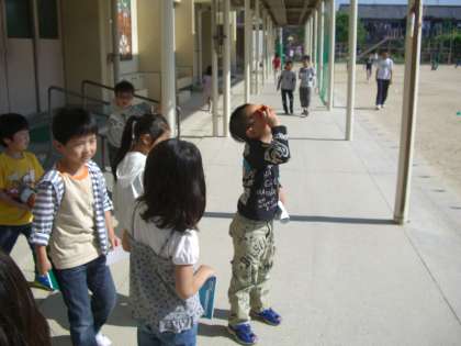 しゃ光板を使って見る太陽に思わず歓声を上げる子もいました。