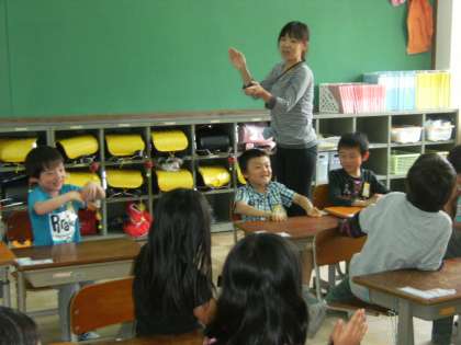 1年生は,「What’s your name?」の言い方に言い慣れて「My name is 〜.」と答える学習をしています。自分の名前をしっかりと言えると良いですね。楽しい雰囲気の中で何度も言うことで,自信をつけてくれると思います。