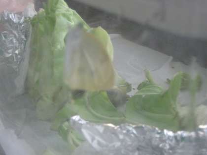 朝,飼育ケースの中にモンシロチョウがじっと止まっていました。