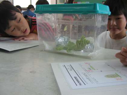 飼育ケースには,まだほかのさなぎがいます(10匹も!)から、しずかにしずかに観察しました。