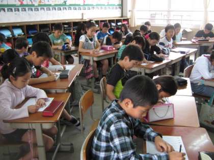木曜日は教職員の朝の打ち合わせがないので、8時30分から先生と一緒に学習をします。火曜日と木曜日は国語の学習をします。子どもたちも何かをするかがわかっていて、びしっと始めています。朝の10分間も大切な時間です。