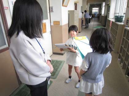 いろいろな教職員にインタビューしている姿が見られました。