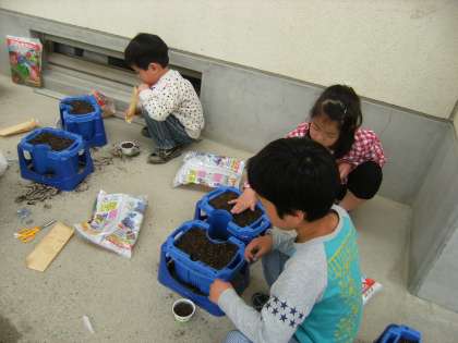 1年生は,アサガオの種をまきました。
