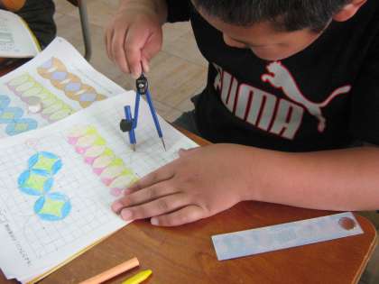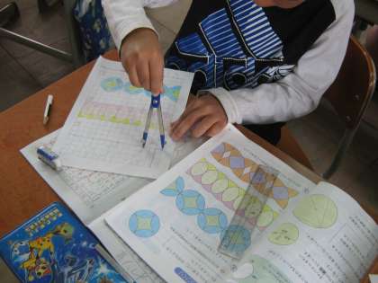 今日はコンパスを使って模様をかきました。