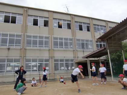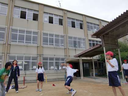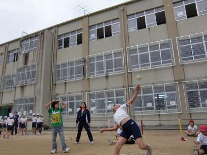 小ぬか雨が上がった運動場で5年生がソフトボール投げの記録会を行っています。記録はともかく必死で投げる姿を写真に収めたくてシャッターを切りました。