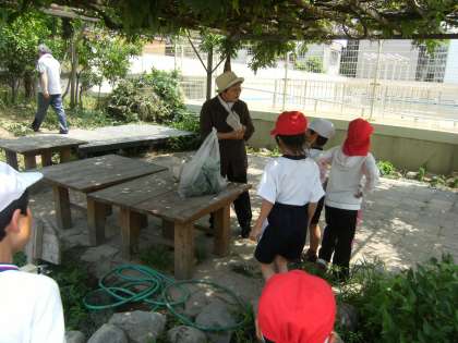 本校の地域の方から「さつまいも」の苗をいただいて,2年生が育てます。