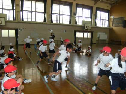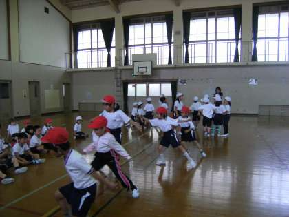 今日の体力テストの種目は反復横とびです。1年生の時にもやりましたが,最初に練習をして,体の動かし方を思い出させることにしました。この種目は,大切なのは何と言ってもリズム感と敏捷性。皆がとても一生懸命に取り組んでしました。周りで回数を数える友だちも真剣です。「1年生の時より回数が増えた」と,とても喜んでいました。