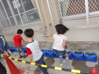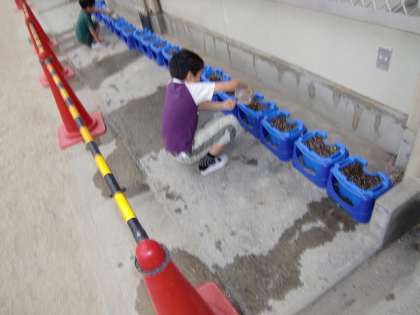 1年生が朝顔の種をまいて,一所懸命水やりをしてきました。