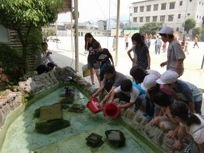 昨日,何年振りかで水を抜き,汚れをかき落とした池に金魚を戻してやりました。