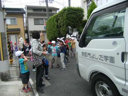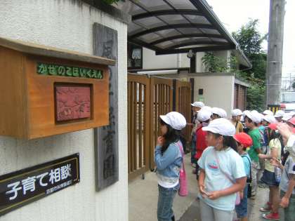 2年生の町たんけんで,後半は,「よしだ学園」「風の子保育園」「エルパーク横の公園」に行きました。公園では休憩して少し体を動かしました。今日は,曇り空で,町たんけんにはぴったりの天気でした。
