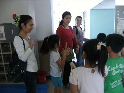 「ハナジョス+コンチョコンチョ」の皆さんの公演が終わり,帰られるところと子どもたちが掃除をしている時間とが合いました。子どもたちは,それぞれがお礼の言葉を言っていました。ごく自然な感じのやり取りと,出演者の皆さんの喜んで下さった表情とがとても微笑ましい感じでした。