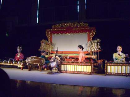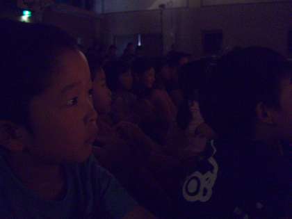インドネシアのガムランの演奏や影絵芝居のワヤンを鑑賞しました。初めて聴く音楽や初めて見る影絵芝居の世界に引き込まれている子がたくさんいました。