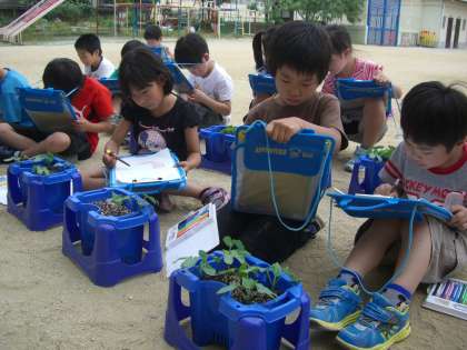 子どもたちがじっくり見ているものは