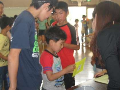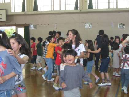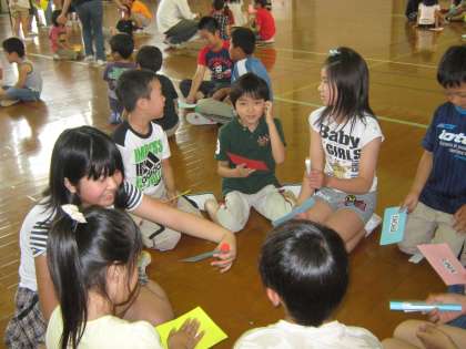 みんなのカードを完成させて,次はSeven stepsのゲームを楽しみました。いろんな活動でよくお世話をしてくれている6年生のお兄さん,お姉さんと,今日は3年生のお兄さん,お姉さんも一緒に活動できて楽しい時間を過ごすことができました。