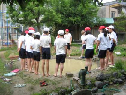 プール清掃の後だったこともあり,子どもたちはどんなに汚れようともお構いなしでした。おかげで,だいぶ平らな田面になり,来週無事田植えができます。