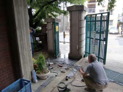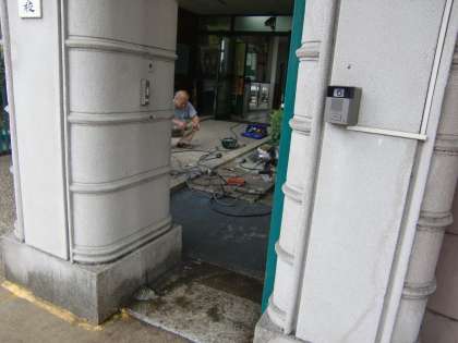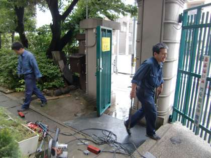 子どもたちがいない休みの日をねらって,今日,鉄製の新しいスロープの取りつけ工事をしてもらいました。