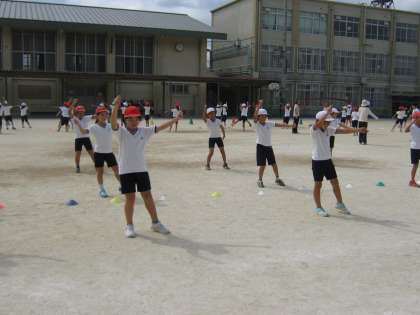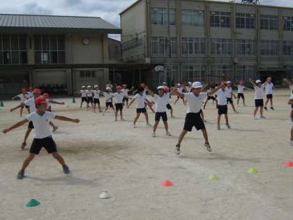 運動場に出ての練習が始まりました。実際に踊る場所,移動したときの位置も覚えました。振りつけもだいぶ覚えました!毎日のように練習があり,疲れるな〜と思うこともあるけれどもっともっとかっこいい踊りになるように頑張ろう!!