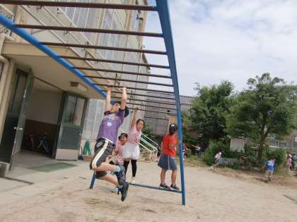 「外遊び」というと「運動場」。「運動場」というと「ドッジボール」ということになって,運動場の端っこの鉄棒やウンテイはあまり目立ちません。でも,毎日,懸命に頑張っている子がいるんです。