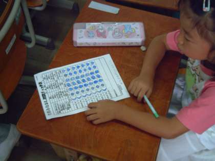 8月27日から9月4日まで「生活見直し週間」でした。子どもたちは夏休み明けの自分の生活リズムを見直し,よりよく学校生活を送ろうとそれぞれ目標をもって取り組んできました。寝た時刻・起きた時刻・朝食・登校時刻・はみがき・排便・体の調子・・・について振り返って表にチェックしています。最終日の今日は,自己反省を書いています。月曜日に担任から保護者の方にお返ししますので,ご覧になって子どもたちのがんばりを見ていただけたらと思っています。