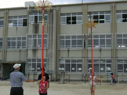 夏まつりに向けて,剣鉾のみんなががんばっています。