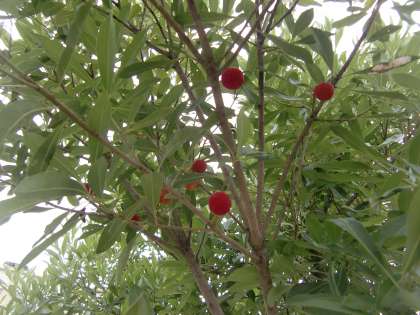ビオトープのヤマモモは私も去年食べました。濃い赤色の実がよく熟していて甘かったです。ジュースにして飲むといいという話も聞いたことがあります。