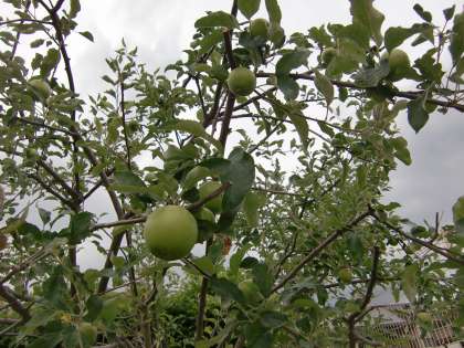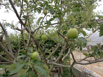 これは去年,食べられるのかどうかが分からなくて,結局,口にしなかった幻の果実です。現在は青りんごの小型みたいですが,食べられるようになるまで,まだ時間がかかりそうです。