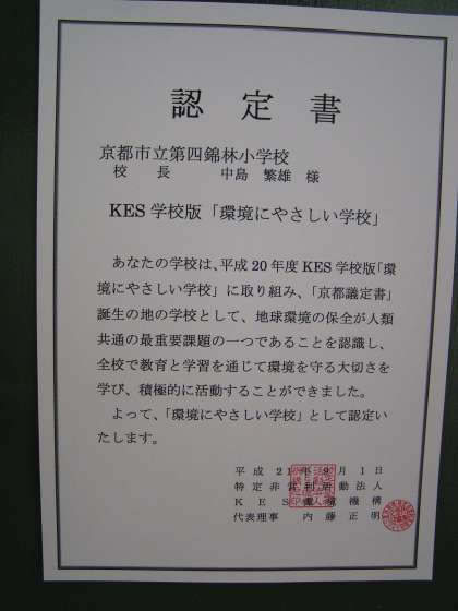 環境にやさしい学校の認定を今年も受けました。