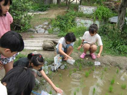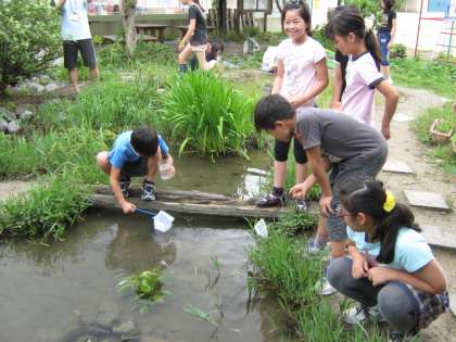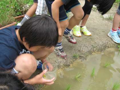理科の学習で、水の中には、メダカの食べ物になる小さな生物はいるのか???実際にビオトープの池や田んぼの水を観察しました。水をビーカーにとって、理科室では顕微鏡を使って観察しまいした。さて、何が見えたかな???
