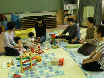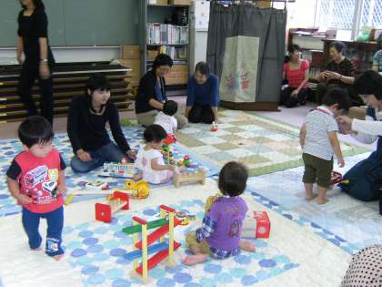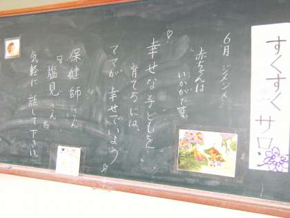 地域の就学前の子どもと親御さんを対象にして「すくすくサロン」がありました。吉田社会福祉協議会,吉田民生委員のかたがサポートしてくれています。会場の「いこいの部屋」の前には