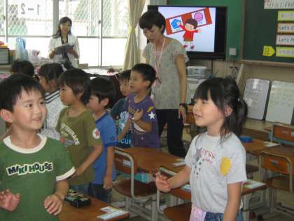 授業の最後には,授業を見に来てくれた先生たちに,”Good-bye Song”を歌って,さよならをしました。
